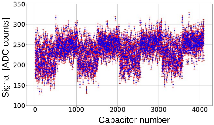 Each capacitor has a different baseline that must be aligned to a common offset by subtracting a proper ADC shift.